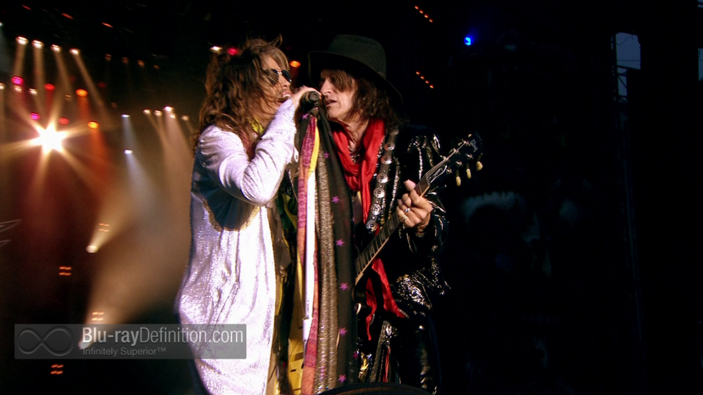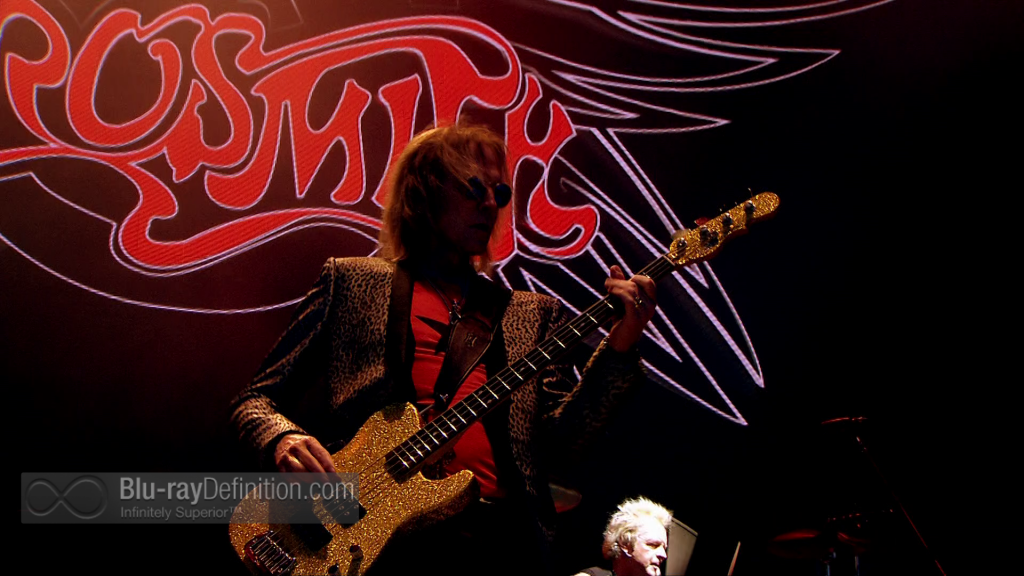 Audio is provided in 48kHz/16-bit DTS-HD Master Audio 5.1 and LPCM 2.0 stereo. The mixes are good, but the separation of sounds isn’t too good. The guitars sound a bit cluttered. High end could be a little scaled back as well, but the midrange and low end offer good punch and musicality. Steven Tyler’s voice also comes through well.