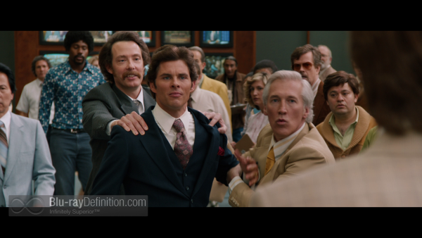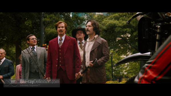 We get a filmic presentation of the original HD production of Anchorman 2 shot on the Arri Alexa presented on Blu-ray in an AVC encodement in 1080p. While it doesn’t present the sort of eye candy that action films or thrillers usually do, it looks good given the genre restraints, especially when Ron Burgundy is at the Dolphin show and we see the glistening cerulean pools of water behind him and other scenes like that that take advantage of the generally bright lighting. The image is clean and crisp with great detail and an organic sort of layered video noise that doesn’t intrude.
