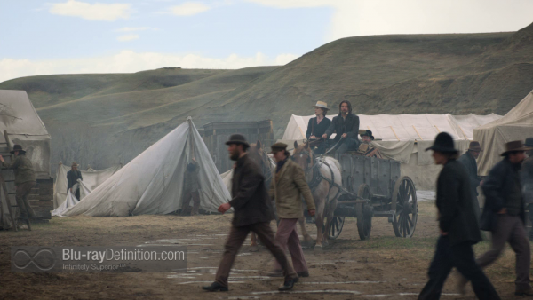 Featuring a lossless DTS-HD Master Audio 5.1, this sound track will keep you interested from beginning to end. With a gracious underscore that puts the surround channels to good use, never failing to fully employ the source cues, the sounds of Hell on Wheels will transport you to another time and place. From the roaring chug of the locomotive, to the hammering clink of iron rods driven further into the ground and the thundering hooves of horses, there’s no doubt that you’re listening to the old sounds of the wild west. The dialogue is well prioritized, clean and clearly presented, the actors lines are never lost amidst a shootout.
