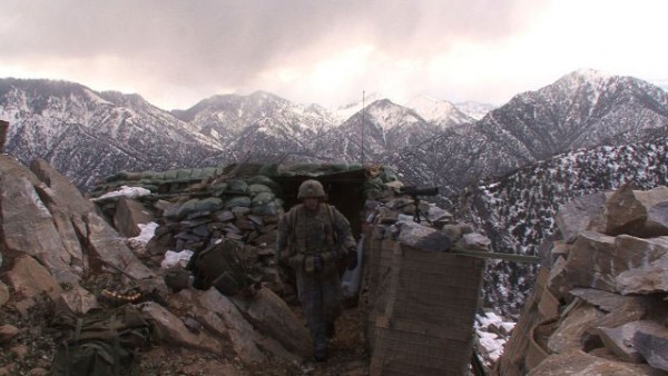 Some of the footage, left over from Restrepo, now makes it into the new documentary Battle Company: Korengal. Just like Restrepo, the story is about U.S. Military platoons stationed in Afghanistan’s Korengal Valley, also known as the “valley of death”. It’s a valley of mountains, cliffs, trees, hilltops – enough camouflage to disguise the enemy they were sent there to fight against — the Taliban. The Korengal Valley was a highway for Taliban activity, so thus it was important for the U.S. Military to prevent the Taliban from supplying their networks with weapons and supplies.