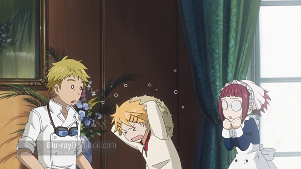 The creators lighten the series a bit by offering up a comical and incompetent house staff as a counterweight to the perfect and brooding Sebastien and the driven and ruthless young Ciel. Additionally, Ciel’s betrothed, Elizabeth, is a colorful blonde who loves to dress up his manor house in gaudy party favors and pastel colors whenever she comes to visit. Character designs are in keeping with the period and gothic theme of the series on the whole. While there is certainly no fan service here, there is a little bishōnen in the grim reaper character Grell, and strong loli-goth tendencies, especially in one episode where Ciel must dress up as a girl to go undercover.