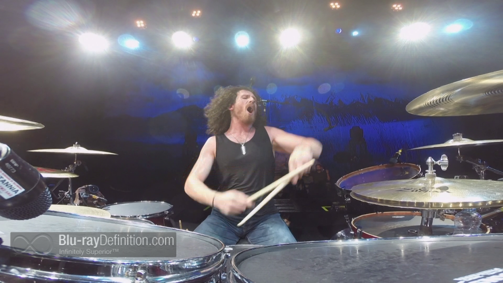 DTS-HD Master Audio 5.1 (48kHz/16-bit) and LPCM 2.0 stereo (48kHz/16-bit) audio tracks are provided for this guitar-heavy concert. The sound is straight-head rock ‘n’ roll, which means for the most part the music resides in the mid- and upper range of the audio spectrum, but the low end is good, just don’t expect anything rattling floorboards and resonating through walls. Guitars sound just a little bit grating and separation isn’t always too clear, but the 5.1 mix sound just about right for a live show with the ambience in the surrounds. The stereo mix is also good, but the nod goes to the 5.1 here.