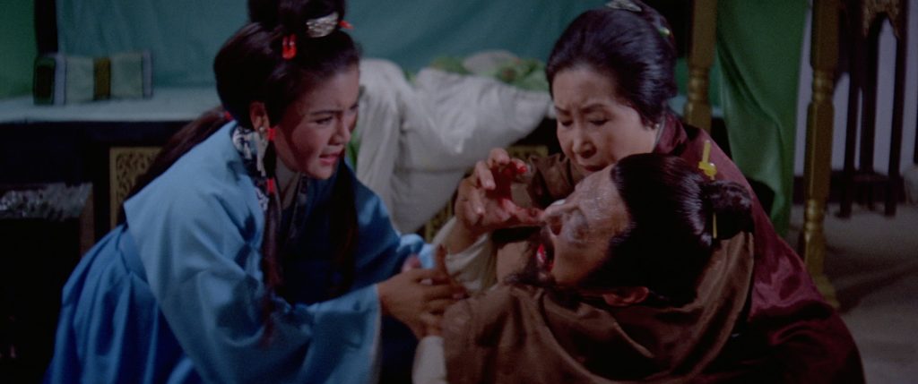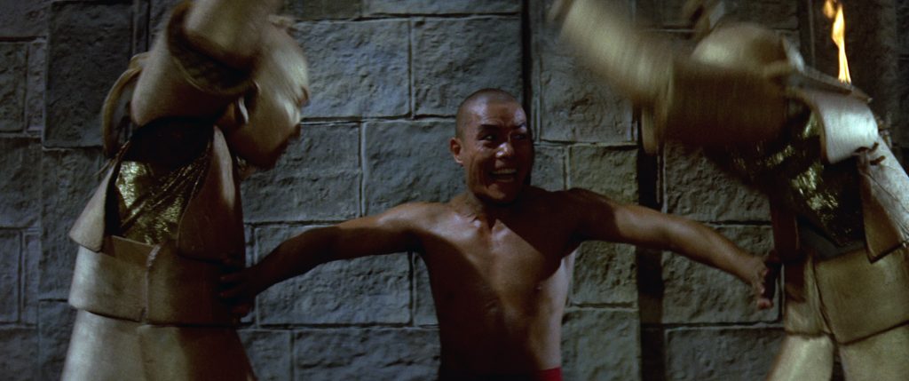All eight films are provided across four discs, so they are squeezed two films a disc into this set, but the restorations of these late 70s to early ‘80s classics look very good, nevertheless. Do keep in mind that a lot of these films are very low budget, so some of the issues with the picture in a film like The Old Master, where it was a rough and quick shoot, tripods setup unevenly, no switching of film stocks for different light settings, and so on, so that the image quality can vary wildly on the source itself. That given, these 2.35:1 AVC 1080p encodements look true, mostly quite clear and clean, and often provide vibrant colors, such as the gorgeous reds, yellows, golds, and greens of the costumes in 18 Bronzemen. Each film is encoded in AVC 1080p with a 2.35:1 aspect ratio, all originally shot in ‘Shawscope,’ the Shaw Brothers branding for CinemaScope.