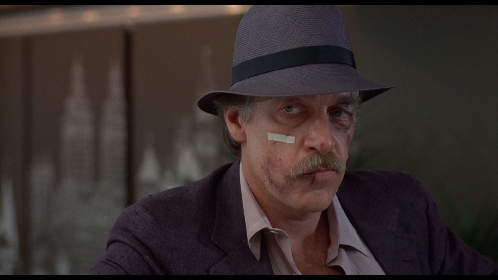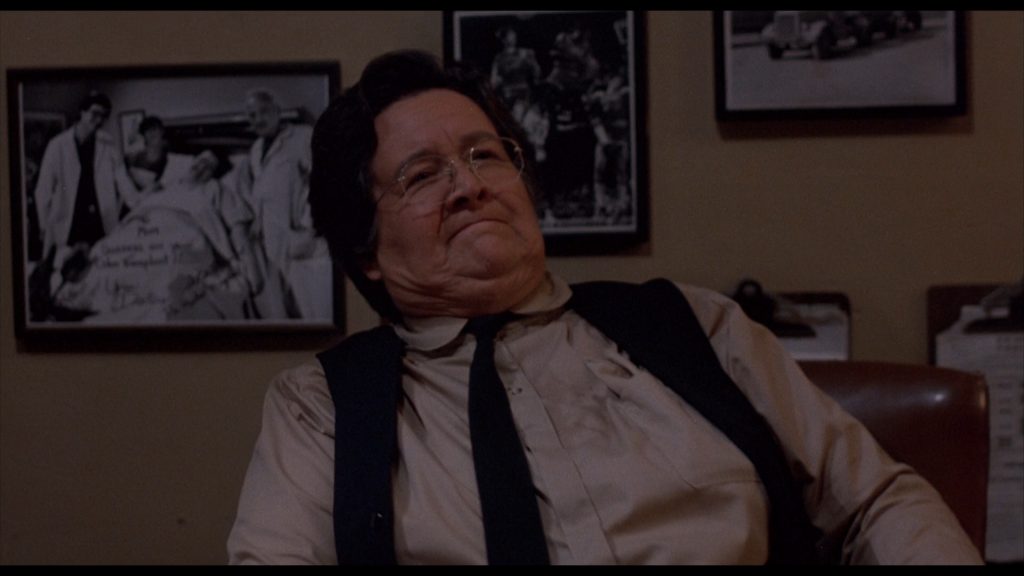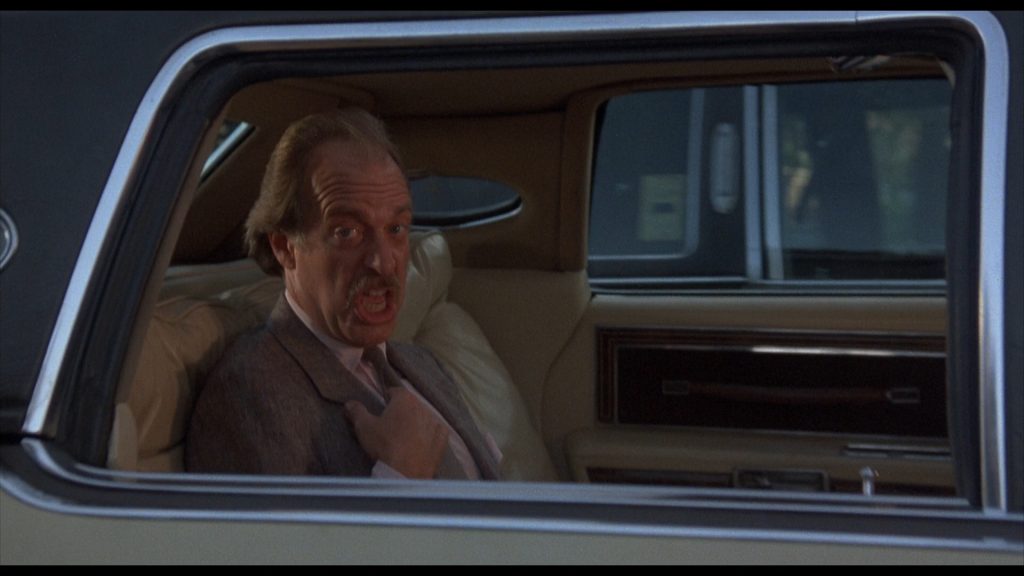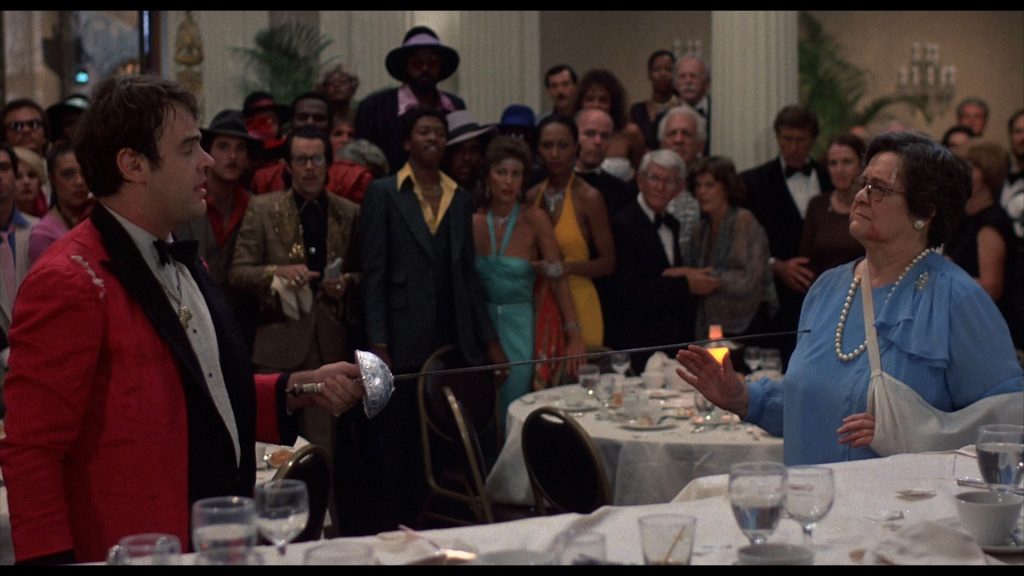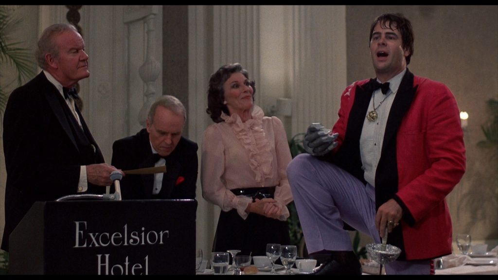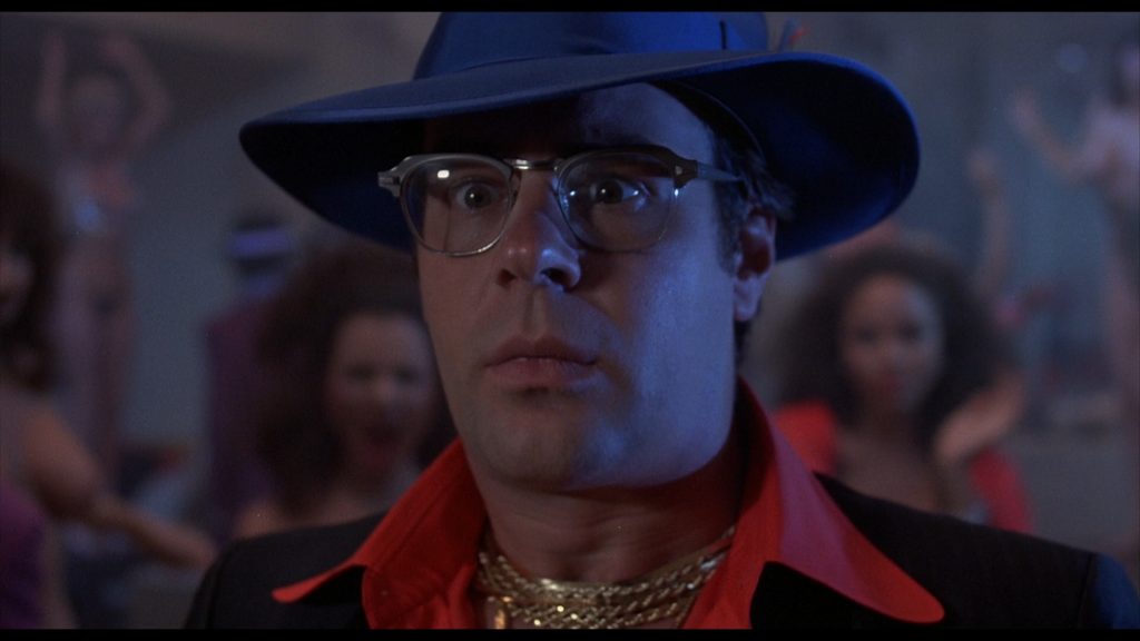 It’s not long before Skridlow finds himself having to rescue one of the women from charges prostitution charges, in one of Aykroyd’s most over-the-top improvisations of the movie as he crafts a character that is a cross between Colonel Sanders and Huey Long. When confronted by Mom and her thugs, he begins to design a persona that is part street pimp, part Mr. Hyde and starts to revel in his role as protector of the women.