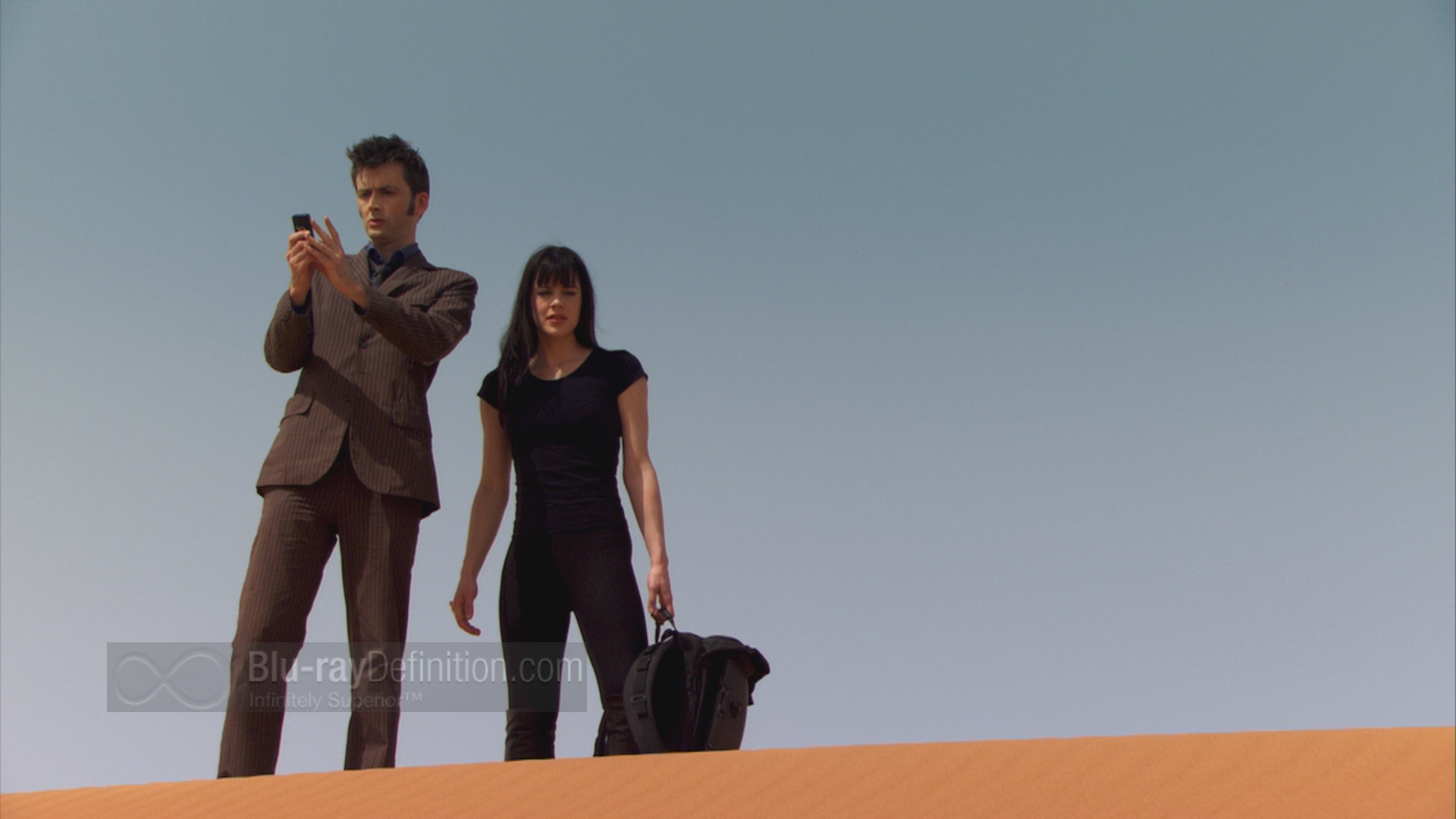 Planet of the Dead’s supplements consist solely of a making-of featurette entitled Planet of the Dead Confidential (1.78:1; 1080i/60). It provides a detailed behind-the-scenes look at the on-location shooting in Dubai, interview segments with David Tennant, Michelle Ryan, and the show’s producers, as well insight into some of the logistical problems the team faced. One interesting tidbit that can be gleaned is the issue with the double-decker bus that was shipped to Dubai for filming being accidentally smashed at the port, which required Russell T. Davies to rewrite the script.