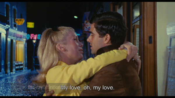 These films cover two decades, and the images improve considerably over time. For the most part, the color films are beautifully restored, the exception being Un Chambre en Ville that has surprising amount of grain. Restoration details are presented in each film at its beginning and are mostly 2K restorations of the 35mm original masters, using either Scanity or ARRISCAN digital scanners. Director Demy had a great eye for colors, with the big screen acting as his canvas, and uses them to make dramatic points like the reds and violets of Un Chambre en Ville, the whites and blues of The Young Girls of Rochefort, or the chromatic rainbows of Donkey Skin.