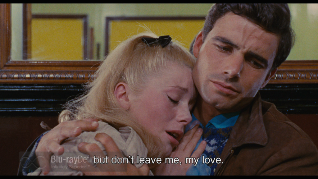 Before Guy leaves for two years’ military service in Algeria, Geneviève vows to wait for him, and they make love. Two months later, we find Geneviève pregnant with Guy’s child.