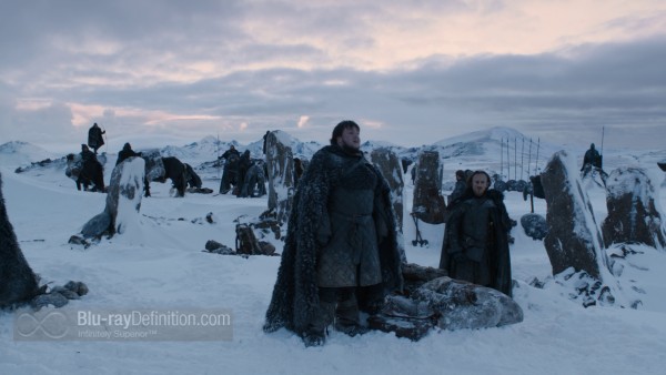 Game of Thrones continues to be shot in high definition using the Arri Alexa camera with Cooke S4 and Angenieux Optimo lenses. It arrives in the usual AVC/MPEG-4 1080p encodement from HBO. While the transfer is steps above the 1080i broadcasts on cable (I checked recent reruns on my FIOS service), this season on Blu-ray doesn’t seem to be quite as crisp in appearance or have the same deep dark levels and strong contrast of the previous season. At times, during some of the season’s extensive, shadowy sequences, the image tends towards softness and the level of video noise is a little bit more noticeable than it has been in the past. Still, Thrones looks good, all things considered, and the image is nuanced, allowing for a lot of detail in the lavish sets and costumes to come through.