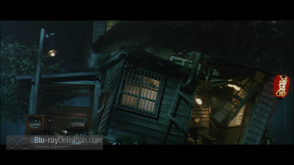We get two audio options, well, in reality, two entirely different film options with one audio track each. The full-length Japanese version has its original stereo track in DTS-HD Master Audio 2.0 (48kHz/24-bit) and the edited U.S. version has a dubbed DTS-HD Master Audio 5.1 (48kHz/24-bit) track. The Japanese stereo track is really good for stereo, with an extremely wide stereo field that almost surrounds you, great dynamics, and clear dialogue. The English 5.1 is bombastic, with a deep low end, solid effects in the surround channels and lots of atmospherics. Dialogue is also clear.