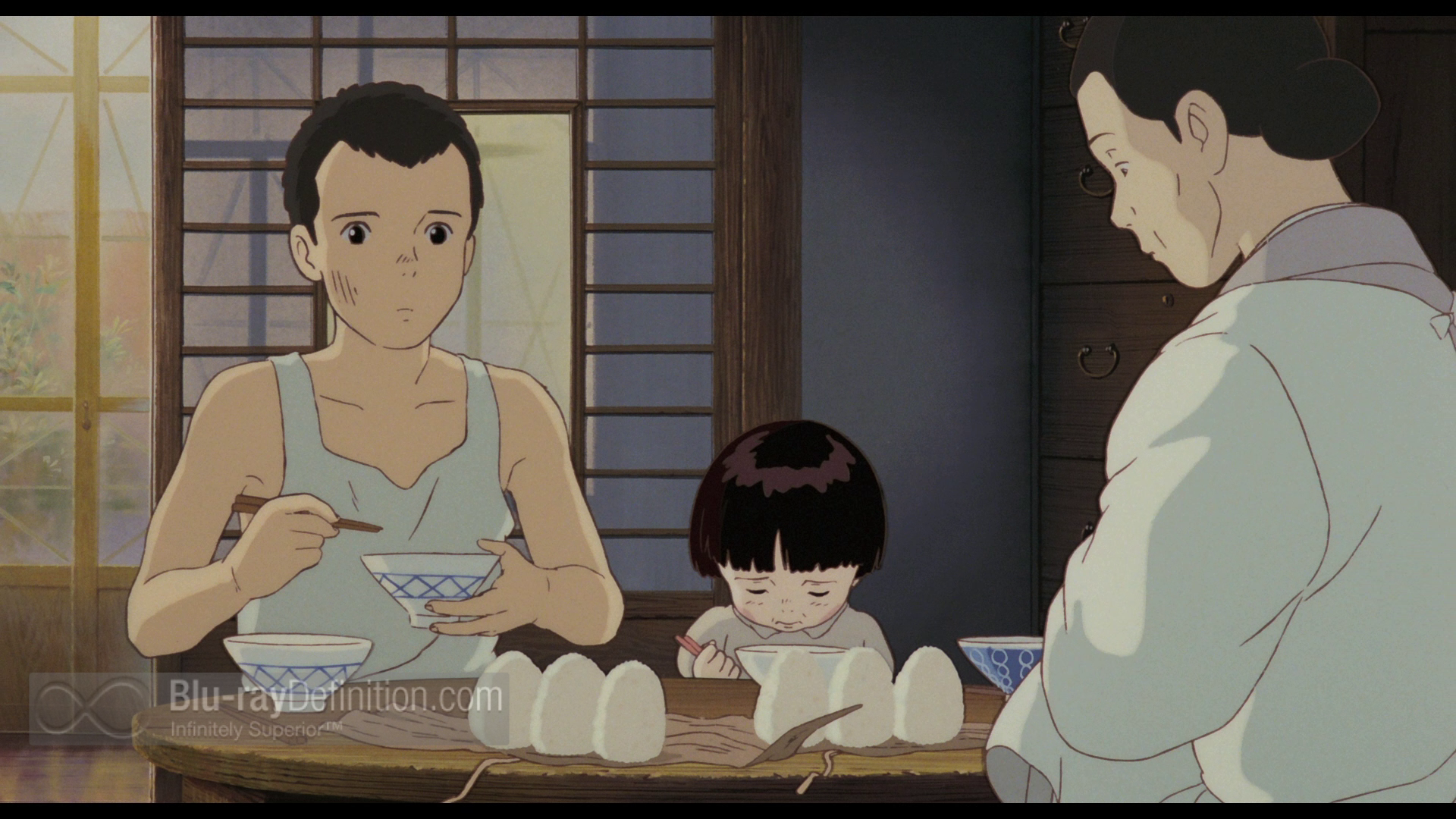 A wartime story of survival, or, more precisely, a lack thereof, the film opens on an unsettling scene, in 1945 as the ghostly visage of young Seita appears on the screen against a nearly black backdrop. We then see him, laid out, disheveled, and moments away from death, before he eventually expires. We are then taken on a journey through flashbacks showing us how he arrived there. It’s World War II Japan, and the young adolescent boy Seita is left caring for his little sister Setsuko while their father is away fighting during the war after their mother dies during an air raid on their town. At first the two youngsters travel far to live with a distant Aunt, but she soon grows weary of taking care of them, so the siblings move out to live on their own in an abandoned bomb shelter. Their harrowing struggle for survival becomes the main focus of the story, as the situation becomes desperate, their food becomes scarce, and the young Setsuko becomes ill from malnutrition.