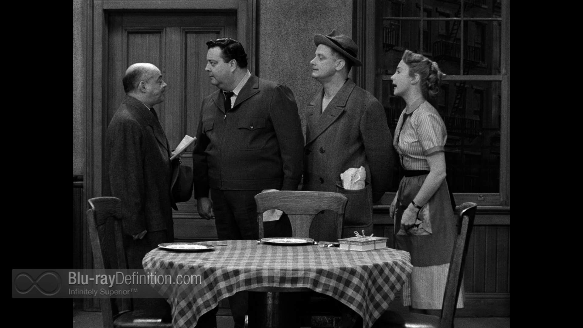 The Honeymooners: Classic 39 Episodes arrives with an AVC/MPEG-4 1080p encodement on Blu-ray. While The Honeymooners doesn’t quite reach the same level of quality as CBS/Paramount’s companion release of the classic first season of I Love Lucy on Blu-ray, the image quality is much better than expected. It looks just a little dark and murky, but is basically clean and shows good detail with grain much more limited than one would expect. The texture and detail are quite good given the series’ age.