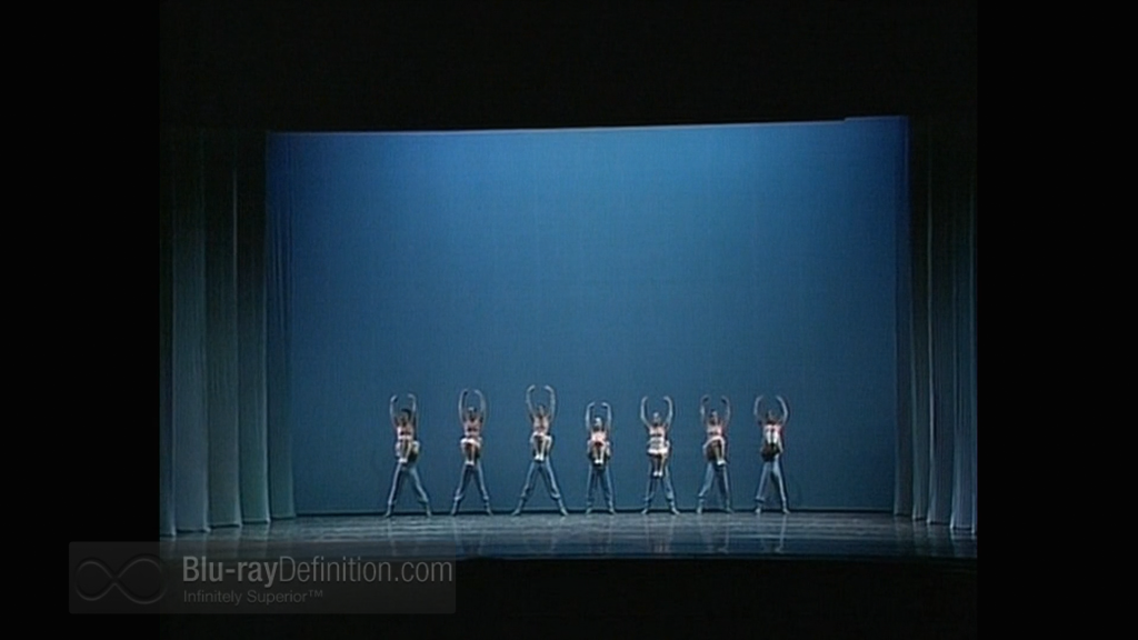 All of the sources were pre-recorded and range from boxy (Sinfonietta) to open and reasonably spacious (Symphony in D, Toccata for Percussion Instruments). The two-channel LPCM soundtrack is perfectly coordinated with the dancers.