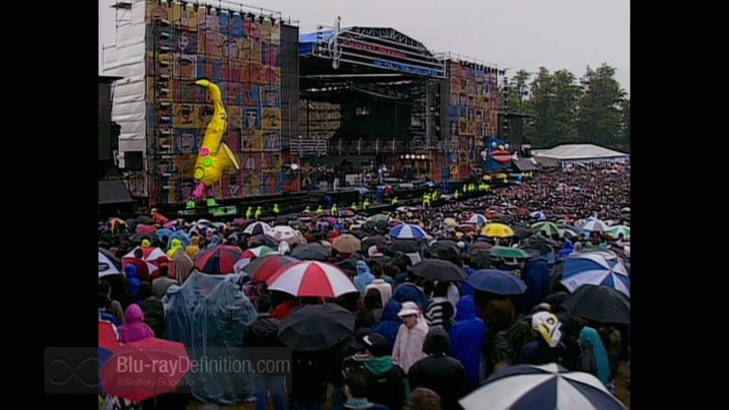 This is a well-shot standard definition (1.33:1 aspect ratio) video for an outdoors event and while the images get a bit blurry in the distant shots, close ups of the performers (and there are plenty of them) are very good if lacking the ultimate sharpness produced by today’s high-definition cameras. Given the limited number of available camera angles, the crew does a decent job of conveying the immediacy of the concert for viewers.