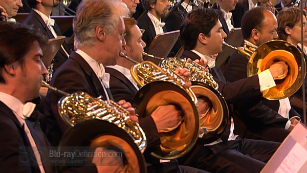 Video director Michael Ciniselli was a name unfamiliar to me but his camera crew’s work gives us a good mix of close ups and distant shots with some very intimate scenic highlights of the orchestral soloists. Colors are very natural and details quite decent, although the distant images looked a touch softer than usual.