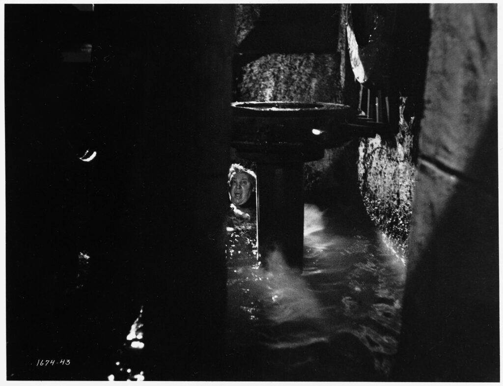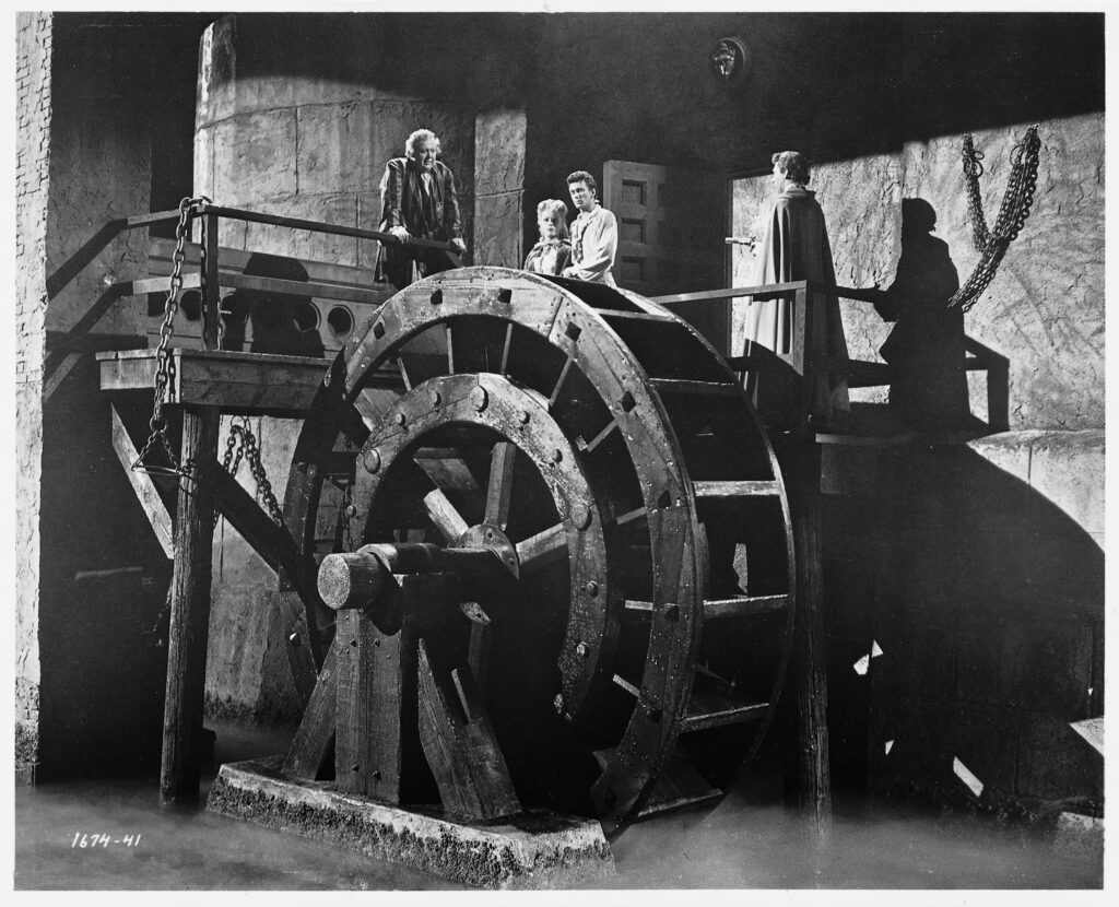 Last but not least, the collection ends with The Strange Door (dir. Joseph Pevney, 1951), which features the inimitable Charles Laughton as the sadistic Sire Alain de Maletroit who has kept his own brother locked up in a dungeon for twenty years and is now trying to ruin the life of his niece, forcing her into a marriage with a violent rapscallion he picks up from a local pub. Boris Karloff plays an abused servant that surprisingly comes to her aid.