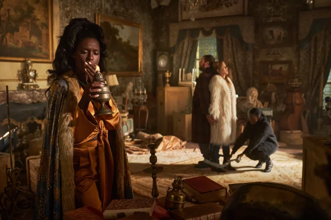 After a four-year hiatus—they’re baaack!! Adam Sandler and Jennifer Aniston return in Murder Mystery 2 as former police detective Nick and ex-hairdresser Audrey Spitz as the husband and wife detective team from the original Murder Mystery. Also returning are billionaire Vikram “Maharajah” Govindan (Adeel Akhtar), one-eyed and now bodyguard Colonel Ulenga (John Kani) and French Inspector Delacroix (Dany Boon). Vikram has invited the Spitzes to his all-out Indian wedding on his private island where he will tie the knot with beautiful Claudette Joubert (Melanie Laurent). Also in attendance will be Vikram’s former fiancée Countess Sekou (Jodie Turner-Smith) and her attendant Imani (Zurin Villaneuva), his sister Saira (Kuhoo Verma), and his business partner, the notorious playboy Francisco (Enrique Arce).