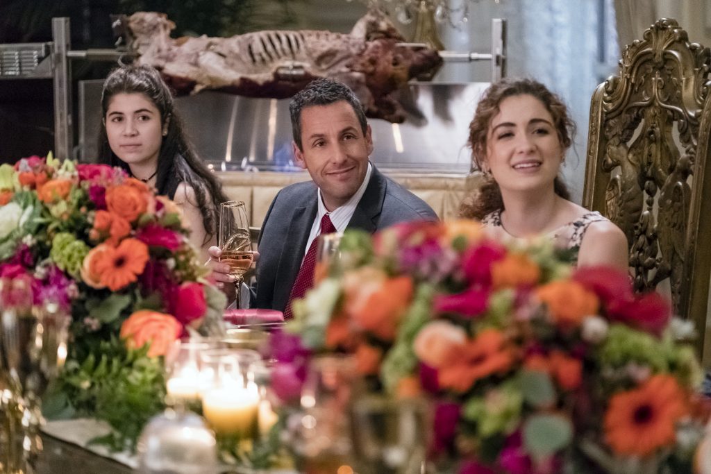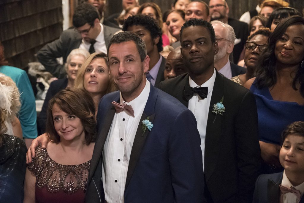 Cash-strapped but proud contractor Kenny Lustig (Sandler) is about to marry off his lovely daughter Sarah (Allison Strong) to dental student Tyler (Roland Buck III), the son of a wealthy L.A. surgeon, Dr. Kirby Cordice (Rock). Things get off to a rocky start when Kenny goes to the airport to pick up grumpy and legless Uncle Seymour (Jim Barone) and gets a list of the old man’s medical requirements that will compel him to room and board his uncle instead of putting him up in a hotel. We gradually meet Kenny’s extended family, argumentative wife Debbie (Rachel Dratch), wimpy son Isaac (Jake Lippmann), younger daughter Rose (Chloe Himmelmman), Aunt Iris (Suzanne Shepherd) and grandmother Roberta (June Gable). More guests invade the Lustig household, including catatonic and recovering drug-addict cousin Noah (Noah Robbins), numerous relatives of the groom and even Dr. Cordice himself when his “suite” at the “two-diamond” Quality Lodge develops a ceiling leak.