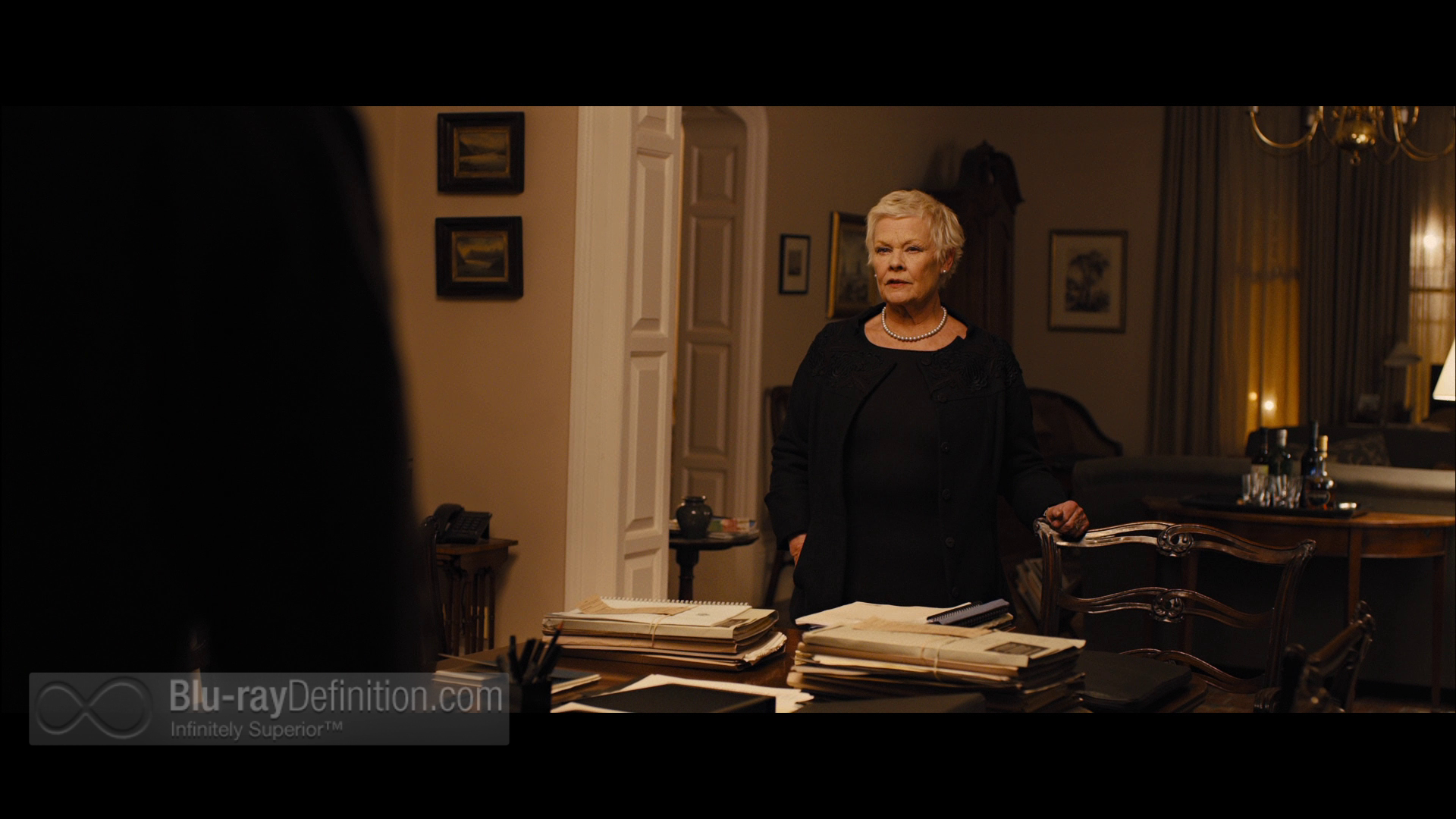 This 007 was shot in high definition on various Arri cameras and the Red Epic for aerial shots. The AVC/MPEG-4 1080p encodement to Blu-ray is nearly flawless, with rich detail, crisp textures, nuanced shadow delineation and dark black levels without a hint of crush (check out all the detail in the stitching that can be made out on M’s black dress). That said, I say “nearly” flawless, because some digital anomalies can be spotted from time to time in darker areas, such as mild posterization and hints of harsh video noise. Still, given the overall quality, these hardly detract from the enjoyment and viewing pleasure.