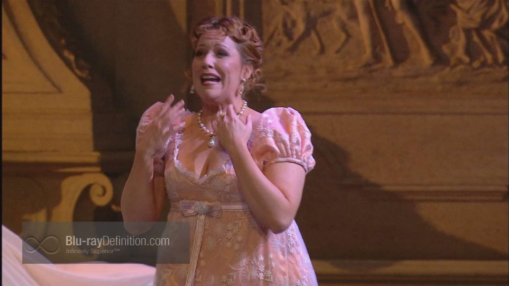 There is an off-the-screen palpability to this production. The costumes and settings are simply outstanding in the best grand opera tradition. The videography is as good as it gets for an opera production. The colors and details as evidenced in the Act II pastorale sequence are eye-popping. With plenty of close ups, it is fortunate that most of the principals are reasonably telegenic. The sole yet important exception is soprano Magee who appears too matronly for her ingenue role.