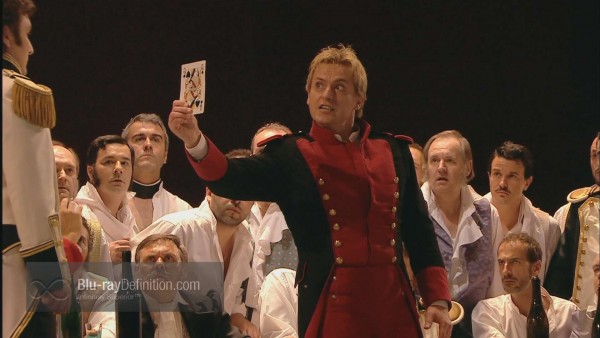 There are several echt Russian productions, including DVDs from the Kirov and Bolshoi companies. However, the theoretical advantage of having native Russian speakers is only important if the vocalism and theatricality are up to snuff. None of the Pique Dames that I have seen previously are without musical or theatrical flaws, some quite serious. Nor do they have the visual magnificence of this lone BD offering. With the exception of Magee’s Lisa, whose Russian is unidiomatic and whose characterization lacks spark, the remainder of this international cast is simply superb. Young Ukrainian tenor, Mischa Didyk, is a Hollywood-handsome Herman and a credible suitor for Lisa. The Countess, usually an end-of-career role for once-prominent female singers, is handled dramatically and vocally by noted Polish contralto Ewa Podles. Her chilling portrayal is easily the best that I have ever seen. Ludovic Tezier, a well regarded French baritone, gives a stellar performance as Prince Yeletsky. Herr Boder’s leadership from the pit keeps everything going beautifully. The traditional sets and costumes are flat out gorgeous. Gilbert Deflo’s direction is spot on as is the videography. In sum, while there is no dearth of video Pique Dames out there, this one wins handily on just about all counts. Opus Arte, you have another winner in your catalog!