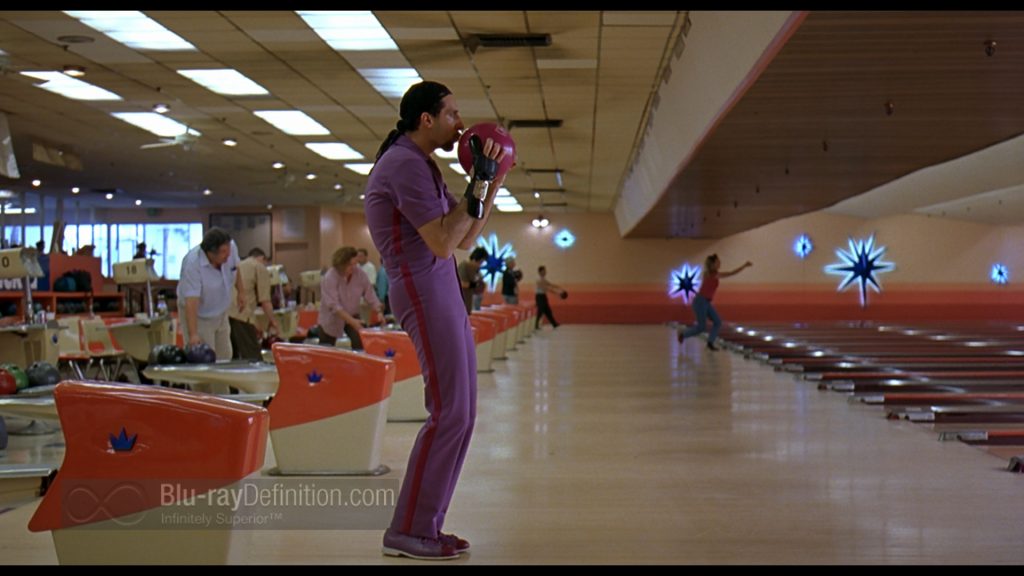 The Big Lebowski does not look like great reference material in this new release, but then the film never was one that leapt out at you and looked really amazing. There are still a few places where some specks of dirt and scratches can be seen. Overall, I’d say Universal has been a bit heavy-handed cleaning up grain, however, and this affects background detail and textures in skin in particular, which can look a little waxy. Flesh tones are good, if sometimes a little reddish. I’m sure most non-videophiles will be happy with this VC-1 encodement of Lebowski, but it doesn’t blow me away.