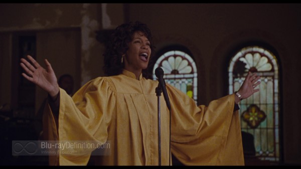 The DTS-HD Master Audio 5.1 (48kHz/24-bit) soundtrack is straightforward most of the time with little activity, but it really opens up during the gospel performance sequences and Whitney Houston’s performance in Jazzie’s Jazz club, with lots of ambience and good dynamics. Dialogue is weighted to the center channel throughout the film and is clean and intelligible.