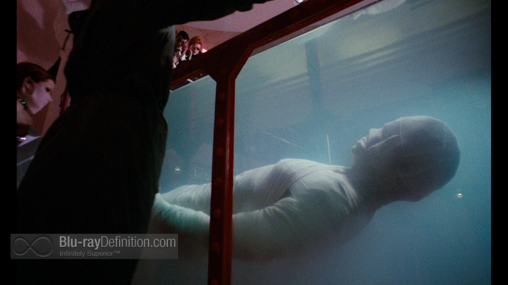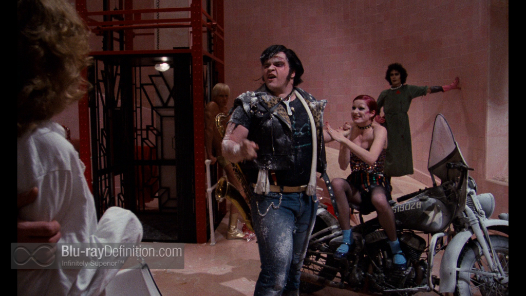 Rocky Horror comes with its original monaural soundtrack in Dolby Digital 2.0 and the English DTS-HD Master Audio 7.1 (48kHz/24-bit) mix from the 2010 35th Anniversary Blu-ray release. The 7.1 is masterful, if you are someone who enjoys music in surround. This mix really opens up the performances, placing instrumentation around. For instance, the opening “Science Fiction/Double Feature” places a saxophone in the surround right channel. At various times, background choruses may be sung in the surround channels or the surround back channels. There’s lots of ambience and atmosphere, a lot of dynamic range, stereo panning, and clear dialogue. The monaural track is by necessity very limited in scope and much more claustrophobic in comparison, but it will do the trick for those who want a more authentic experience.
