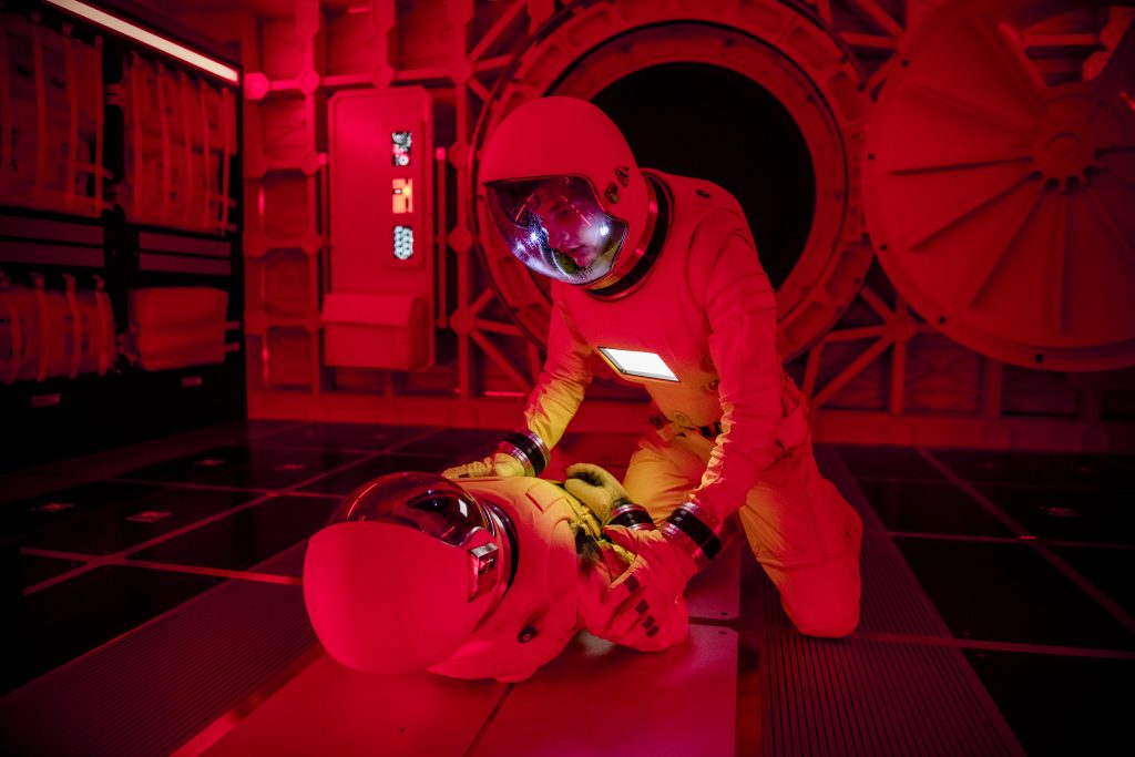 Voyagers looks great, there’s no denying that. Burger’s film is what you want to see for a sci-fi thriller set in spaceship. The spacewalk scenes look amazing, and the confines of the ship look sleek and Burger mixes in multiple angles and colors to make it less repetitive. The story is where this all breaks apart.