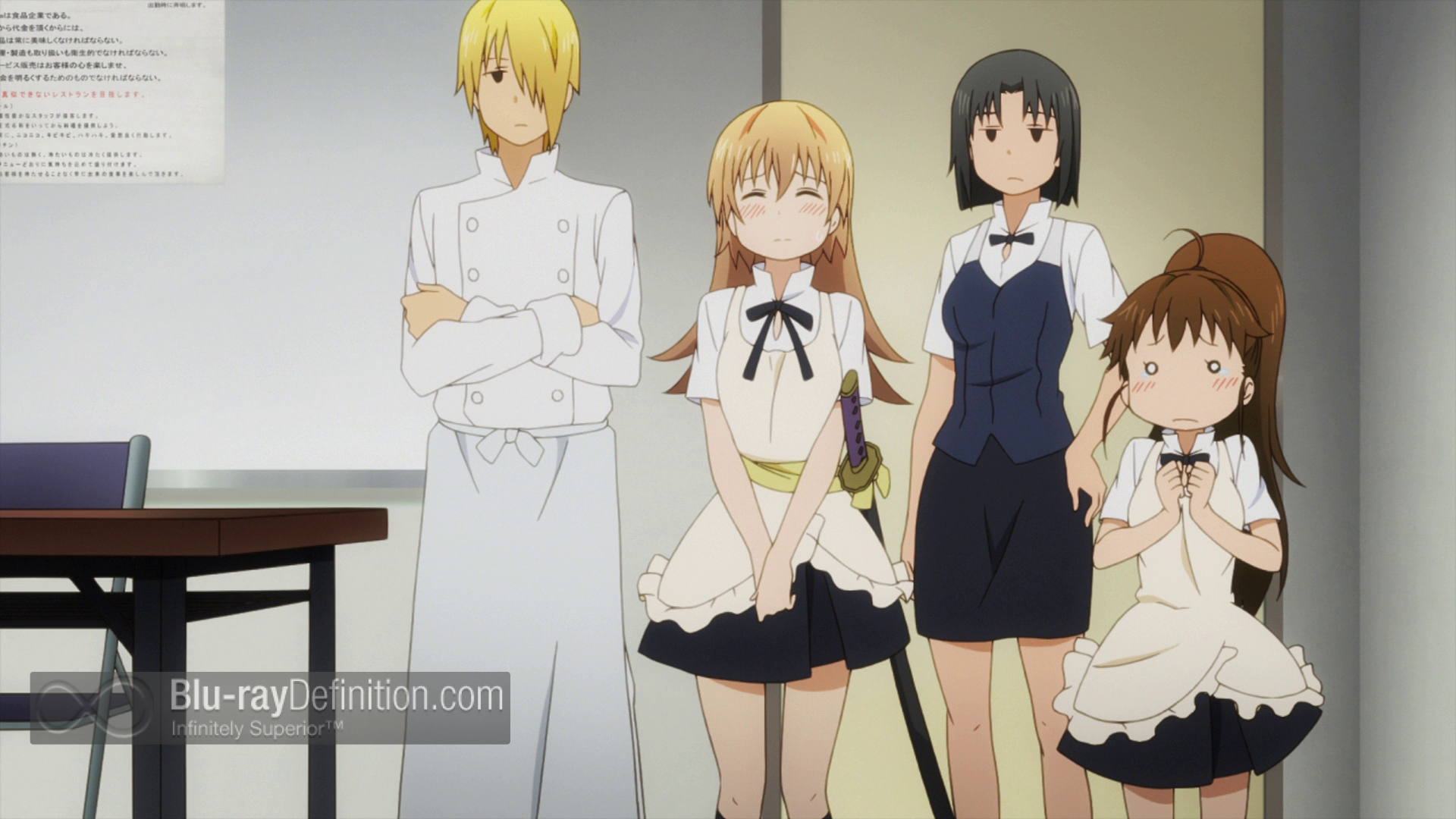 We get a beautiful transfer of Wagnaria!!2‘s digital animation in AVC/MPEG-4 1080p on Blu-ray that is clean and crisp with little in the way of digital anomalies, no problems with color banding or aliasing, and vibrant colors.