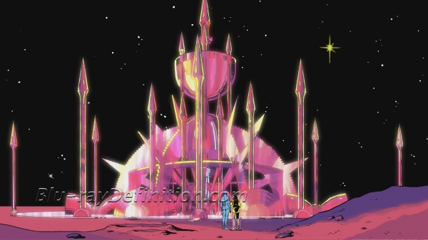 The Watchmen Complete Motion Comic Blu-ray comes in a brilliant 1.78:1 (mislabeled as 1.85:1) VC-1 1080p/24 encoding from Warner that is crisp, clean, sharp and detailed. It flawlessly captures the details of the line art and the shadings of the Watchmen comic, from the deep purples, mustard yellows, and browns. The textured look of Dr. Manhattan’s “H-bomb” skin even comes through with great detail, standing out against the otherwise flat textures.